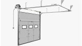 Una puerta seccional de tres o más paneles se abre verticalmente. Utiliza resortes, cables de acero y rodamientos. Ideal para puertas seccionales industriales, puertas de andén, y muelles de carga.